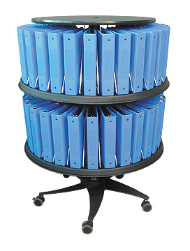 Chart Pros exclusive Rhino-Tuff™ chart carousel racks are ideal for hospital and long term care chart storage at the nurses station. Designed to hold a maximum of sixty (60) 2" chart binders (side or top opening). Floor standing model.